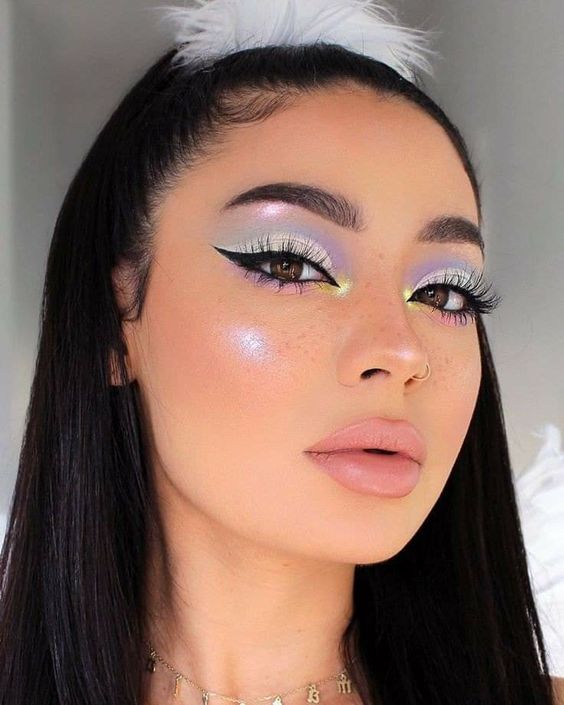 Pastel shades create a soft and playful look, ideal for spring and summer outings. The gentle colors bring a touch of whimsy to your makeup routine.
