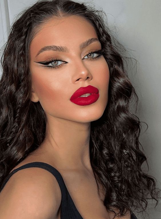To elevate this style, add false lashes for extra drama and volume. Avoid adding too much color to the cheeks or eyes to keep the focus on the bold lips and eyeliner.