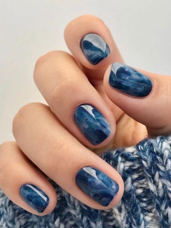 Cozy and Artistic Blue Nails