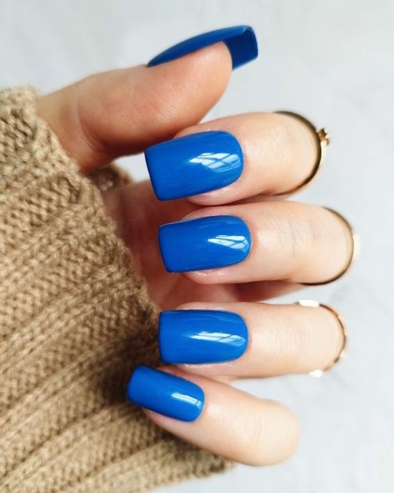 For those who love to make a statement, this vibrant blue manicure is an excellent choice. The glossy finish adds a dazzling effect that’s hard to miss.