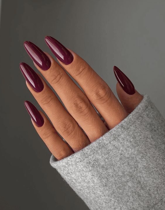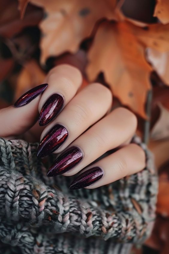 A deep plum shade with metallic sheen is the ultimate winter statement. These nails exude a dark, mysterious energy that pairs perfectly with wool sweaters and cozy knits. The reflective surface of the polish creates a metallic effect that shifts colors in the light, offering dimension and depth. The simplicity of the overall look means it’s perfect for everyday wear, while still allowing you to stand out.