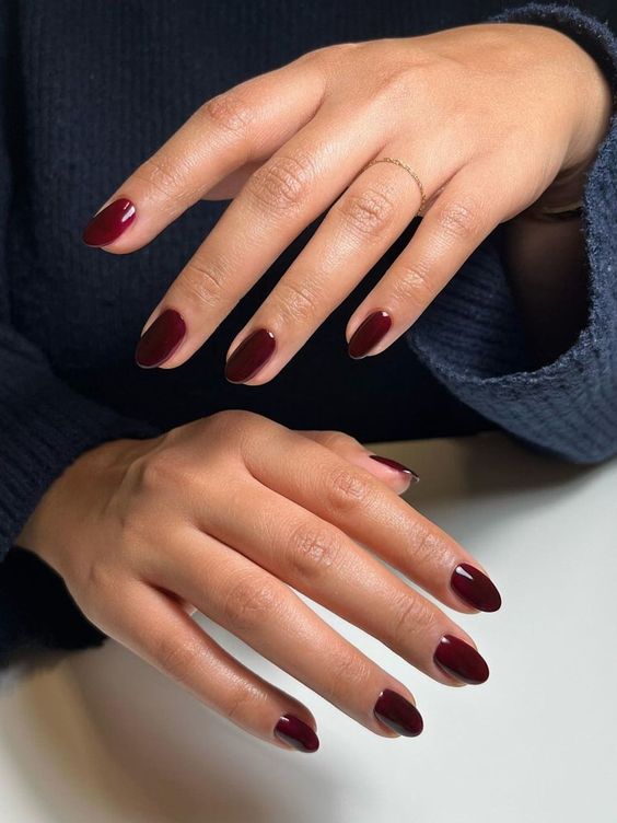 To elevate this style, a French tip in gold could add a touch of luxury. However, adding too many embellishments could detract from the simple elegance of the dark red color, so keep it minimal and let the hue speak for itself.