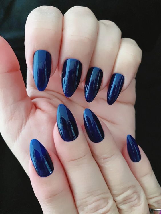 Navy blue nails are bold and beautiful for winter, giving off a modern and edgy vibe. This glossy shade captures light in all the right ways, making it the perfect fit for both casual outings and evening affairs. A rich blue, as shown here, complements both lighter skin tones and deeper complexions, making it a versatile pick.