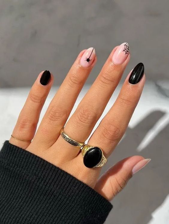 For those who love bold and dramatic designs, this black and pink spider-themed nail art is a must-try for Halloween.