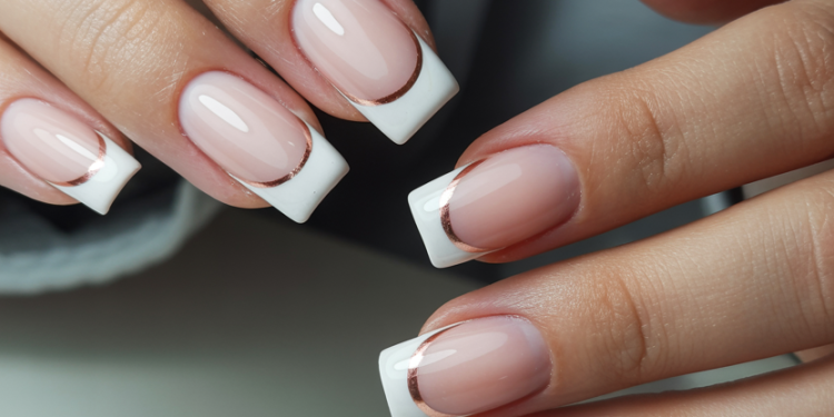 To recreate this, use a nude base and a soft pink for the tips. The delicate line requires precision, so consider using a fine brush or guide strips. This style works well for cool undertones, adding a soft contrast. It’s beginner-friendly, making it easy to achieve at home with steady hands and patience.
