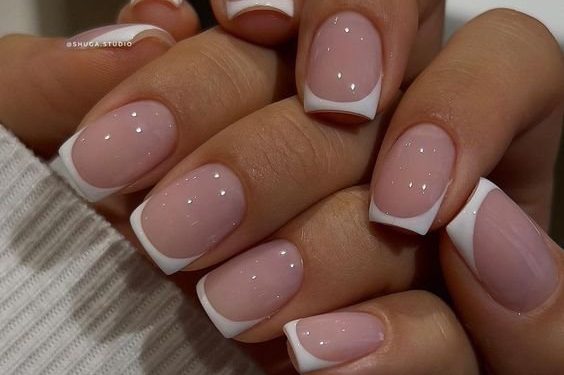 Achieving this look requires precision in the application of the white tips to maintain the balance and symmetry that defines the French manicure. The short square shape is not only stylish but also practical, making it a great choice for those with active lifestyles. For a flawless finish, ensure the white tips are aligned and the pink base is applied evenly. This is beginner-friendly at home, as it requires minimal tools and offers a forgiving finish.