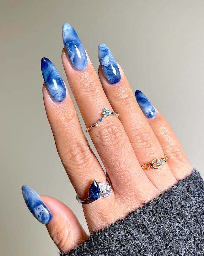 Shape: Long almond, enhancing the flow of the marble effect.