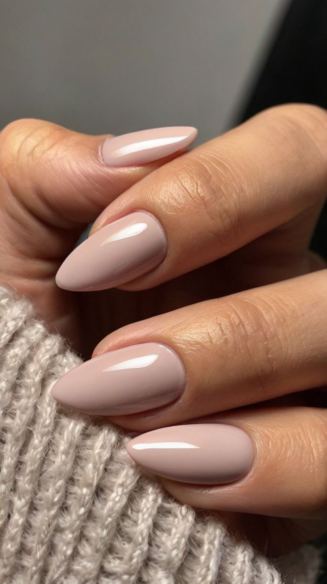Here’s the nail equivalent of a cashmere sweater: soft, solid color, and endlessly wearable. A glossy nude almond manicure is the ultimate classy inspo 2025 because it literally works with every outfit. It elongates the fingers without screaming for attention, making it perfect for work, weekends, or even formal events. It’s ideal for anyone with a medium to darker skin tone as it melts seamlessly with the complexion, but fair tones can pull it off for a chic, editorial effect.