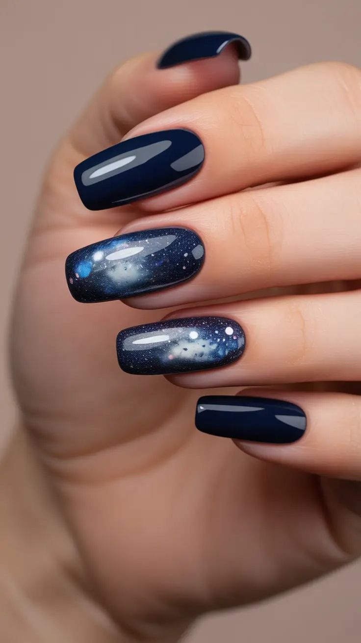 Color: Midnight blue with cosmic sparkles and tiny silver specks.
