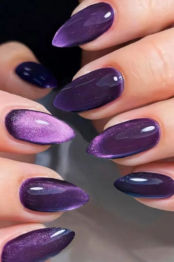 This purple-tinged cat eye art feels like the night sky captured on your fingertips — mysterious yet radiant. The subtle shift from lilac to smoky grey makes it wearable but still unique. It’s a simple yet refined look that works across seasons, particularly for spring evenings or chic after-hours events.