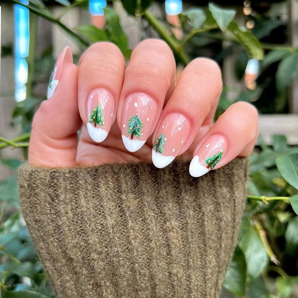Personally, I’d add a gold micro star at the top of the tree art, just to give it a festive wink. Avoid over-accessorizing; this manicure’s strength is its simple art design and sleek finish.