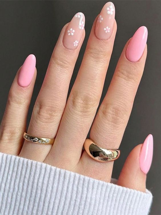 These white daisy designs on a soft pink base are a timeless choice that suits various occasions. The acrylic nails look natural yet elegant, making them perfect for both casual outings and formal events.
