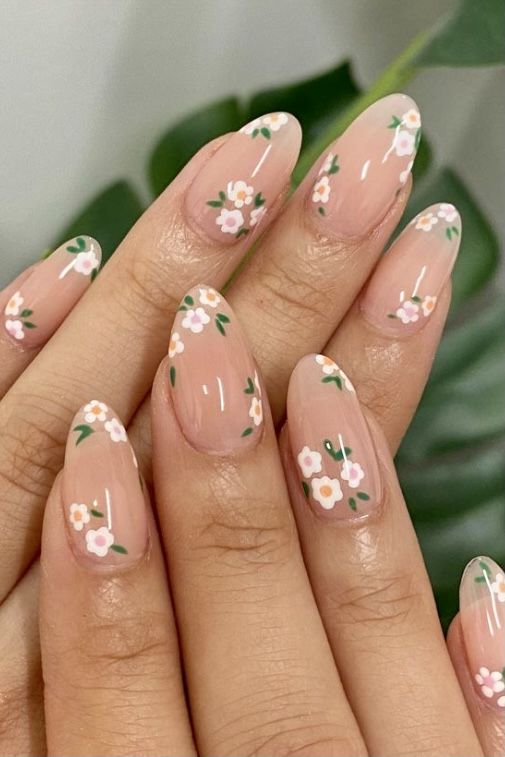 - Floral Patterns: Detailed flowers painted on a nude base, adding an elegant touch.