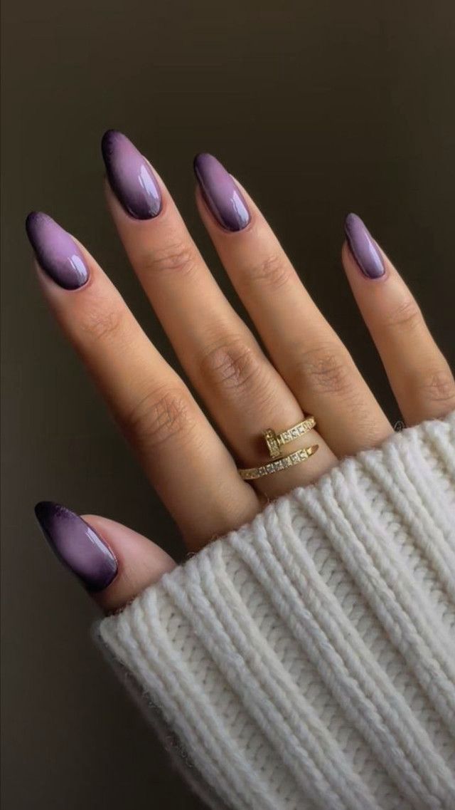 A soft almond shape paired with a deep violet-to-black gradient instantly feels like sweater-weather luxury. The depth at the tips adds a hint of mystery, making this a perfect choice for anyone who prefers understated ideas with a touch of drama. This look works beautifully for medium to long nails and is especially flattering on those with slender fingers, as the taper enhances elegance. Best suited for dinners, art galleries, or chic evening meetups, it might be too moody for bright summer brunches — but that’s the charm of Ideas autumn.
