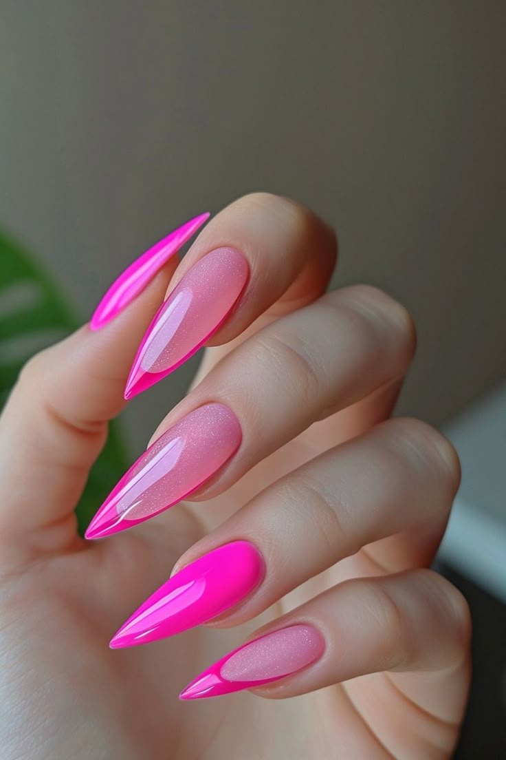 Who says you have to dim your glow for fall? This hot pink and soft shimmer gradient is a standout for fashion risk-takers. The design leans into playful femininity, giving your look a jolt of unexpected energy. It’s best worn with minimalist outfits to let the nails do the talking. This style is more playful than practical—likely not for typing-heavy days—but it’s killer for weekend events or even a cheeky Halloween look with a Barbiecore twist.
