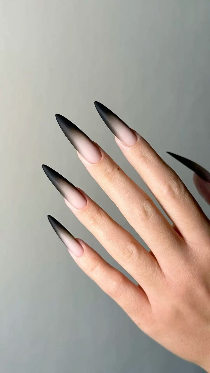 There’s something quietly powerful about matte black. This design takes it further with a graceful black ombré that fades into a soft nude base — restrained, elegant, and perfect for those who want edge without the extra gloss. It suits nearly all hand shapes and is especially flattering on long or narrow fingers. While not ideal for high-maintenance tasks (hello, keyboard clacking), it works beautifully for art events, upscale fall dinners, or intimate date nights.