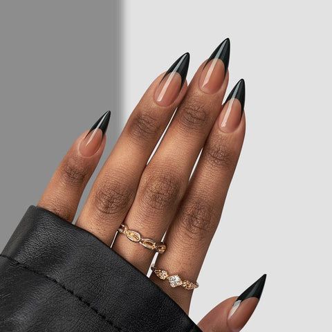 Minimalist meets high fashion in this chic set that blends a nude base with a pitch black stiletto tip. It’s crisp, modern, and surprisingly versatile. With its classy energy, this style works across events — from art galleries to upscale brunches — and flatters every skin tone and finger length thanks to the sleek negative space.