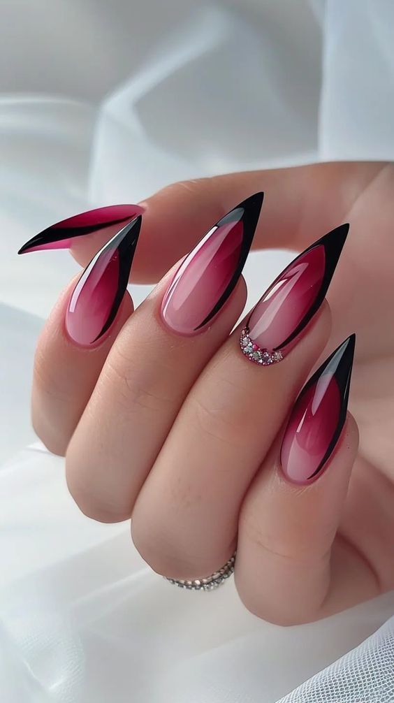 Red and black gets a high-fashion remix in this ombré set kissed with rhinestones. The fade from burgundy to black is sultry, rich, and layered with just enough edge. Perfect for fall date nights, elegant events, or holiday previews, this style suits medium or long fingers and lovers of bold, feminine looks.