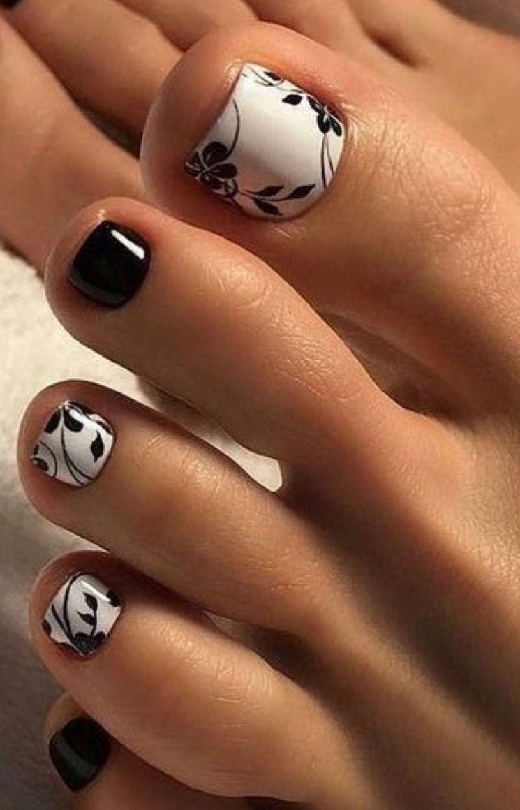 This design is a love letter to balance — edgy yet feminine, minimalist yet intricate. The contrasting black-and-white palette, paired with soft floral motifs, creates a visually dynamic but harmonious set. It’s perfect for someone wanting to lean into autumn pedicure ideas with a touch of elegance and graphic flair. This look works wonders for evenings out, romantic city walks, or creative workspaces. While it may not suit ultra-traditional dress codes, it’s a dream pairing for bold personalities and anyone who likes a bit of visual storytelling.