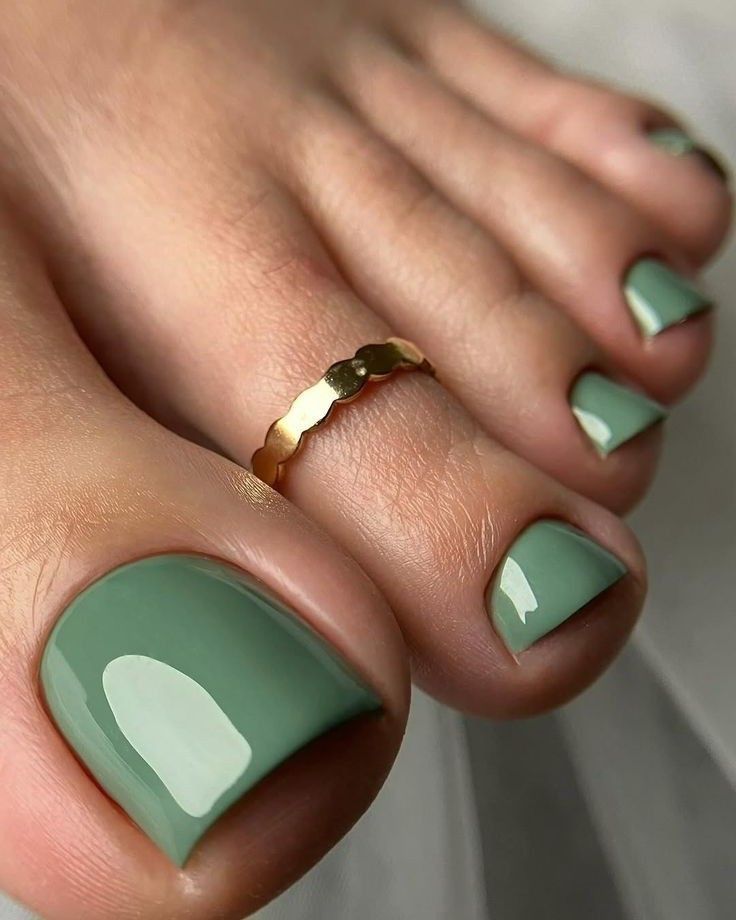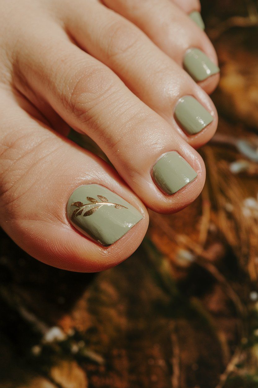 Muted olive green: soft, calming, and ideal for a sophisticated autumn pedicure green
