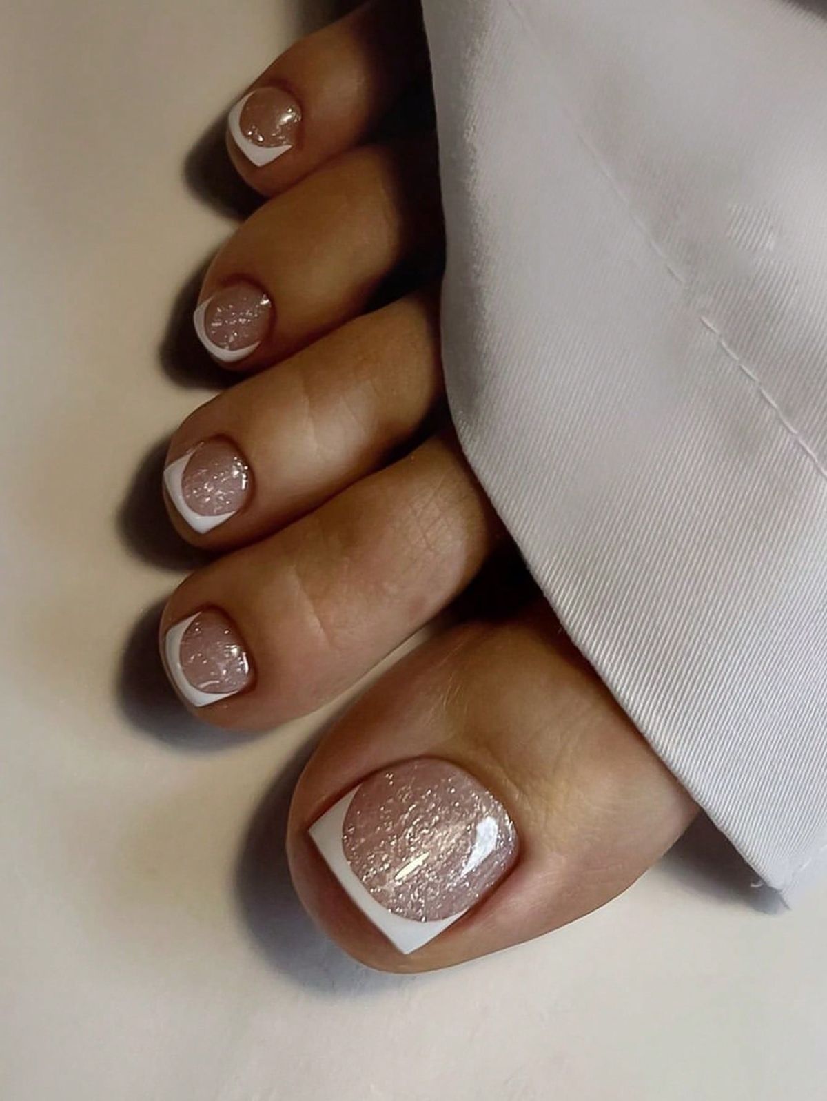 The French tip is back—again—and this time with a clean, subtle upgrade. The thin white line atop a pale pink base makes it perfect for minimalists or early-season stylists. This look screams “I care, but not too much,” and is appropriate for literally any event—yoga, brunch, or even a fall wedding guest look. Works especially well for longer toes or narrow feet, as the line adds proportional balance.