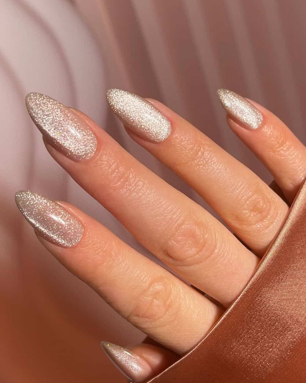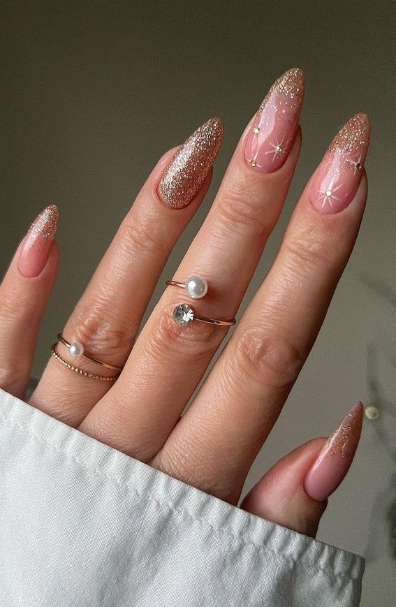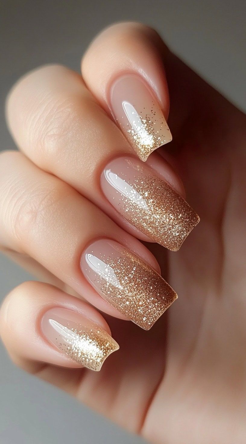 Glitter fade into gold sparkle: creates a chic ombre effect that works well with jewelry.
