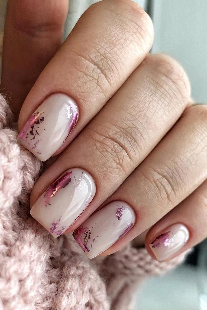 Sometimes less really is more, and these short nails with delicate gold foil touches prove it. The soft nude base makes the metallic flakes pop without overwhelming the design. Perfect for those who love understated art but still want to tap into 2025 trends. Ideal for professional settings where flashy glitter may feel too much.