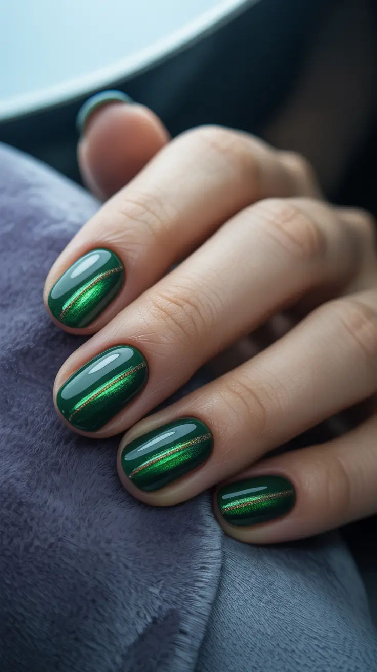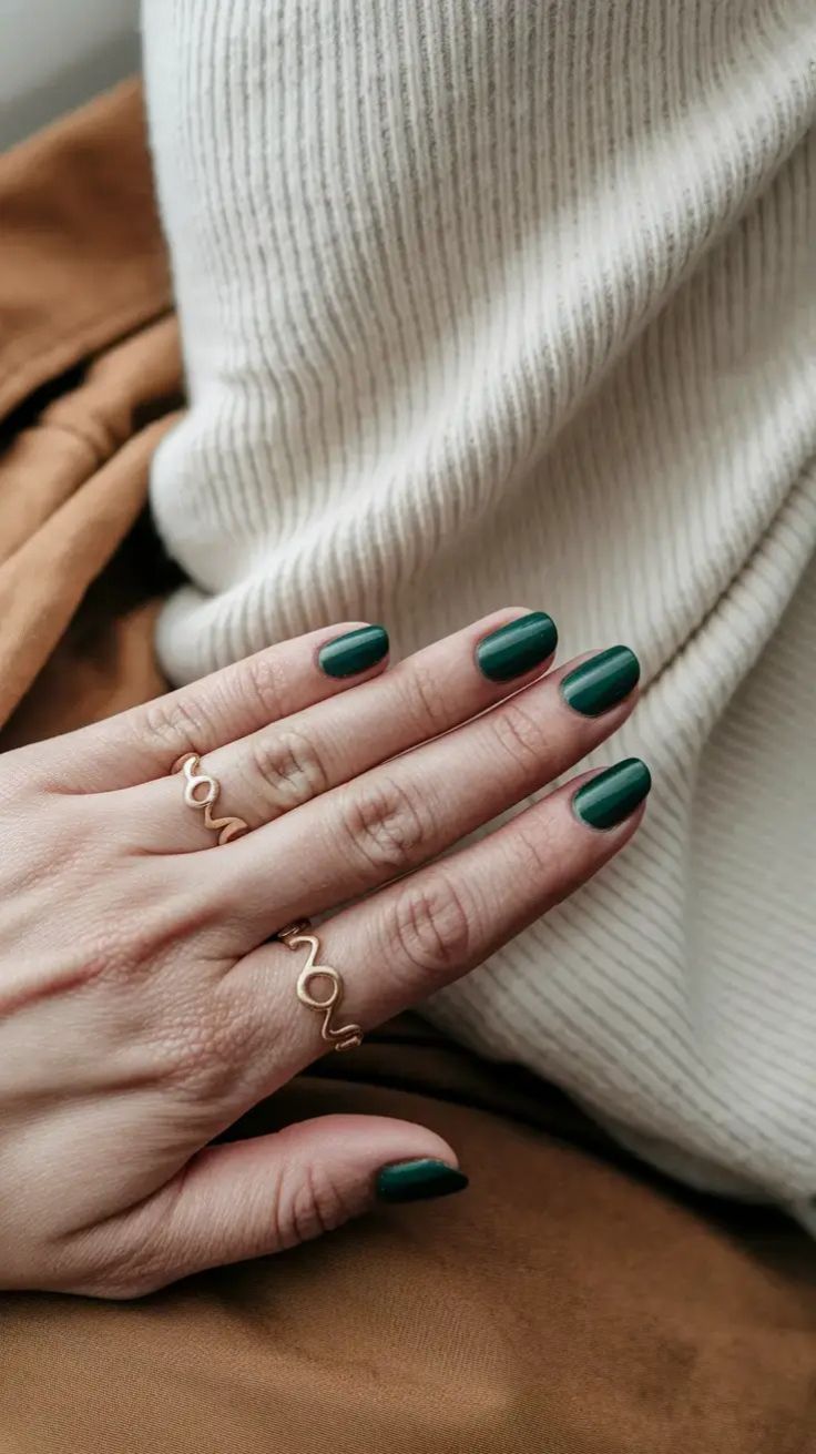 Rich dark emerald nails: Luxurious and classic, with a glossy finish.