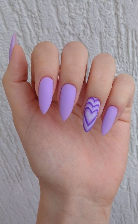 Soft matte lilac meets a dimensional heart design on one nail, creating a cute but modern effect. The long almond shape gives it elegance, while the raised heart adds youthful charm. This look fits well for summer, everyday wear, or fun weekend outfits. It’s versatile and works beautifully for those who like playful accents without going full artistic.