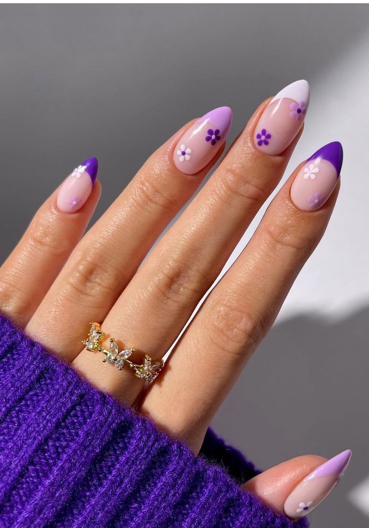 Pastel Purple Flowers & French Tips – Cute Blooming Aesthetic