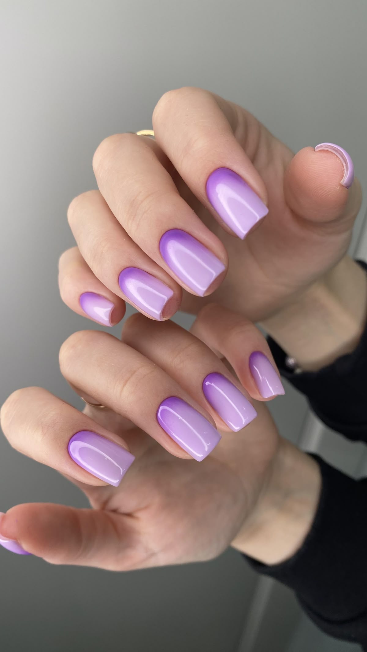 A smooth lilac-to-violet halo centers each nail, giving a dreamy “lit from within” effect.