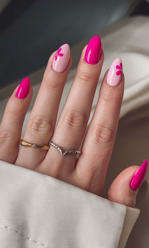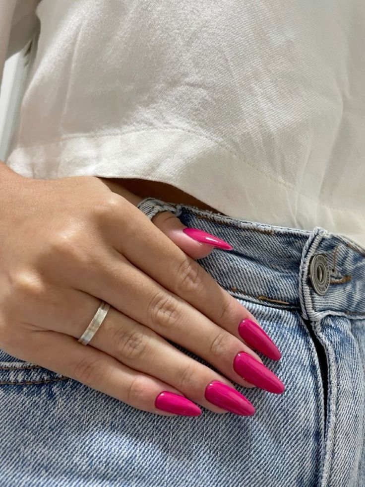 Bold Hot Pink Almond Nails