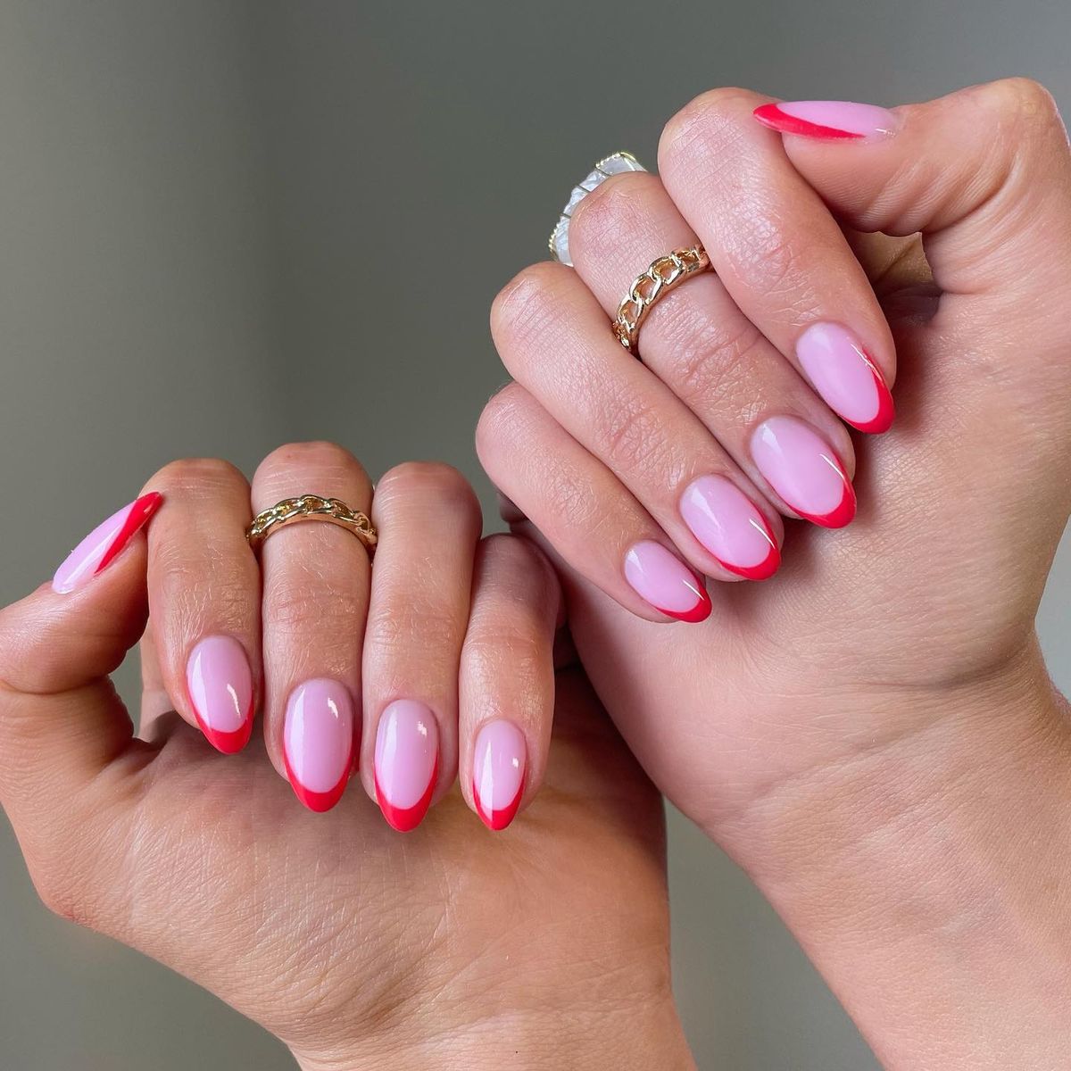 Soft baby pink base: classic, universally flattering.