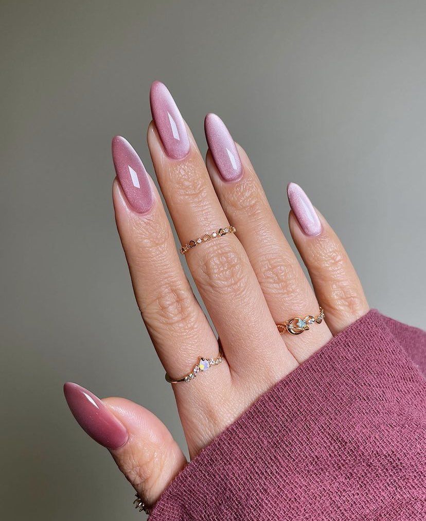 Here, a softer side of pink emerges. Light, creamy pink on almond-shaped tips leans into a simple yet luxe vibe. This is perfect for work environments, romantic evenings, or winter brunches where understated polish works best. It’s also incredibly versatile across skin tones, making it one of the most universally flattering shades.