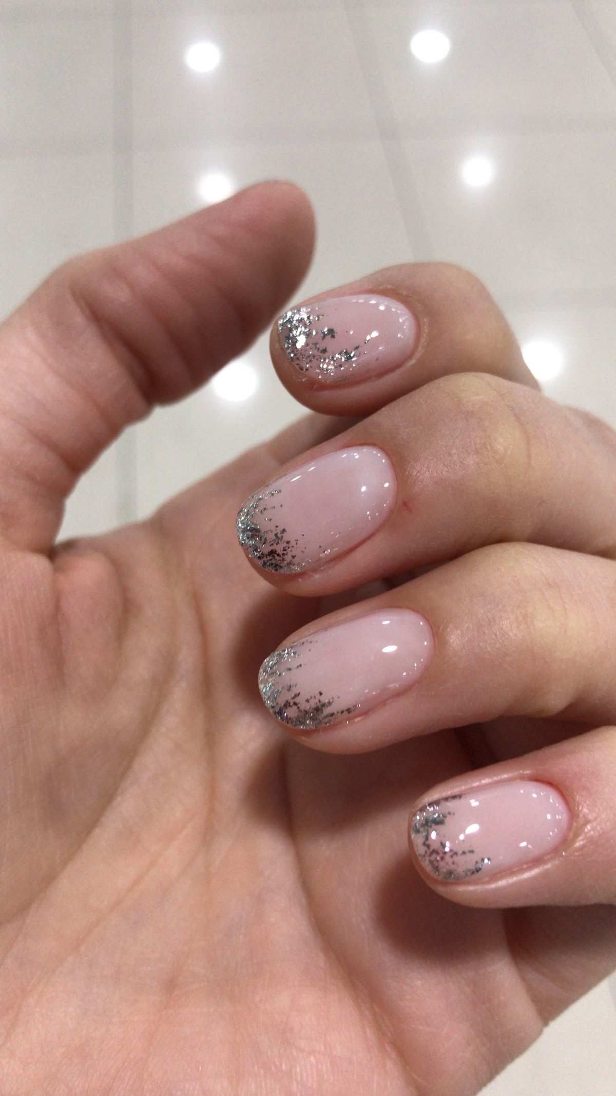 A delicate pink base dusted with silver glitter at the tips—like frost catching early sunlight. This is a cute set that screams holiday inspo, ideal for winter birthdays or even Christmas. Perfect for almond or square-short shapes, though less suited for those seeking designs simple (glitter always leans festive).
