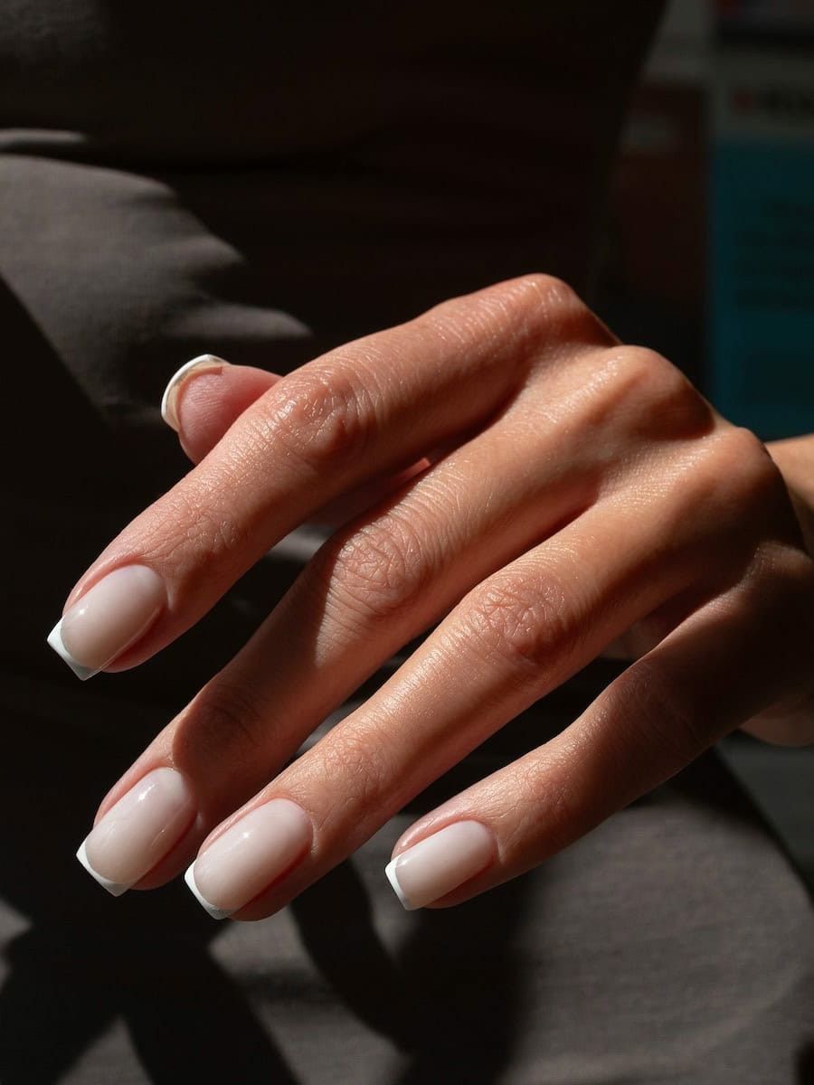 The classic French manicure—pale base, crisp white tips—but on a square short-medium nail. It’s refined, timeless, and always in rotation in designs 2024, staying strong in ideas 2025 too. Works beautifully for every figure and hand shape, but it’s less adventurous if you’re chasing super bold art or trending colors.