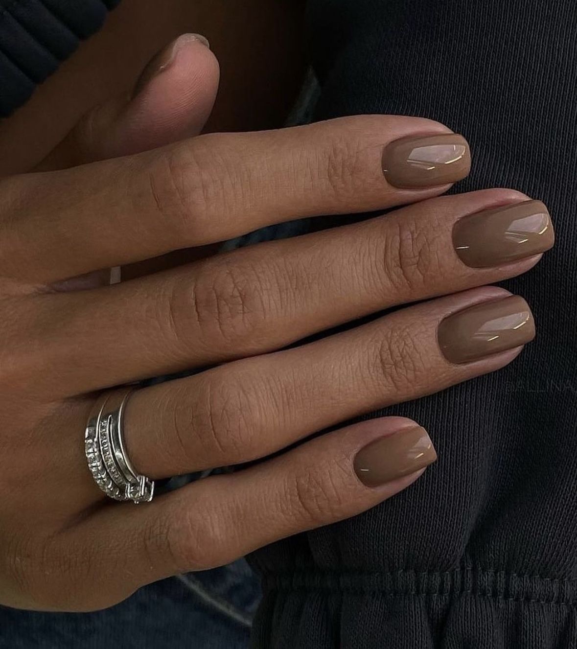 The soft taupe shade with a glossy finish is understated but far from boring. It works beautifully on square or slightly rounded nail shapes, making it one of those designs easy to carry daily without fuss. Perfect for office wear or minimalists, this shade blends into any wardrobe—from camel coats to chunky sweaters. However, if you’re someone who loves dramatic art, this tone may feel too simple.