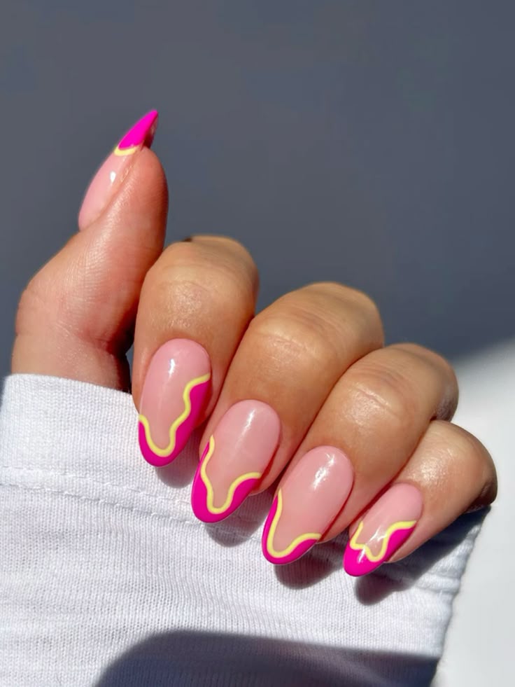 Pink and Yellow Abstract French Tips