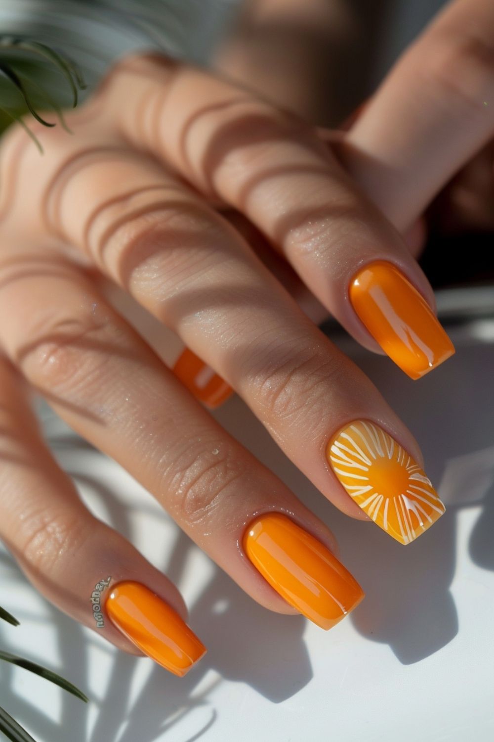 This set is pure spring energy. A saturated orange base paired with a floral accent nail brings optimism straight to the fingertips. The 2025 almond shape elongates the fingers beautifully, making it especially flattering for shorter hands. While bold, this design still feels wearable thanks to its clean execution and controlled detailing. It’s perfect for casual weekends, creative jobs, or sunny getaways—but maybe not the best fit for conservative office settings.