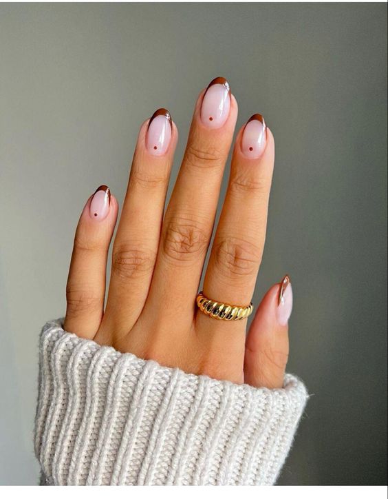 This design features a minimalist approach with subtle brown accents, perfect for those who prefer a more understated look. The small brown dots add a touch of uniqueness without being overwhelming, making this design both simple and sophisticated.