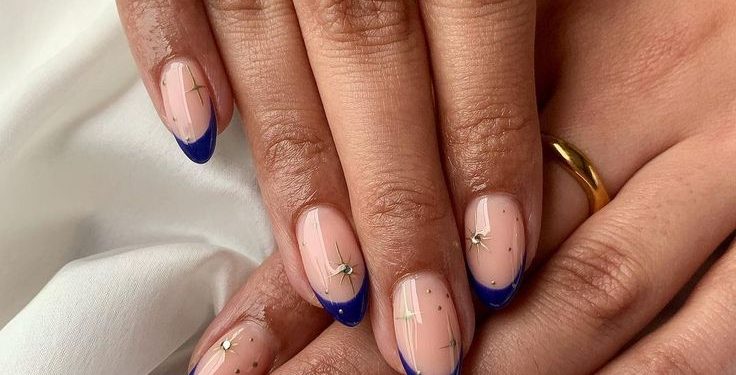 The starry blue tips bring a whimsical and dreamy vibe to the French manicure. Perfect for those who love a bit of sparkle and fantasy in their nail designs.