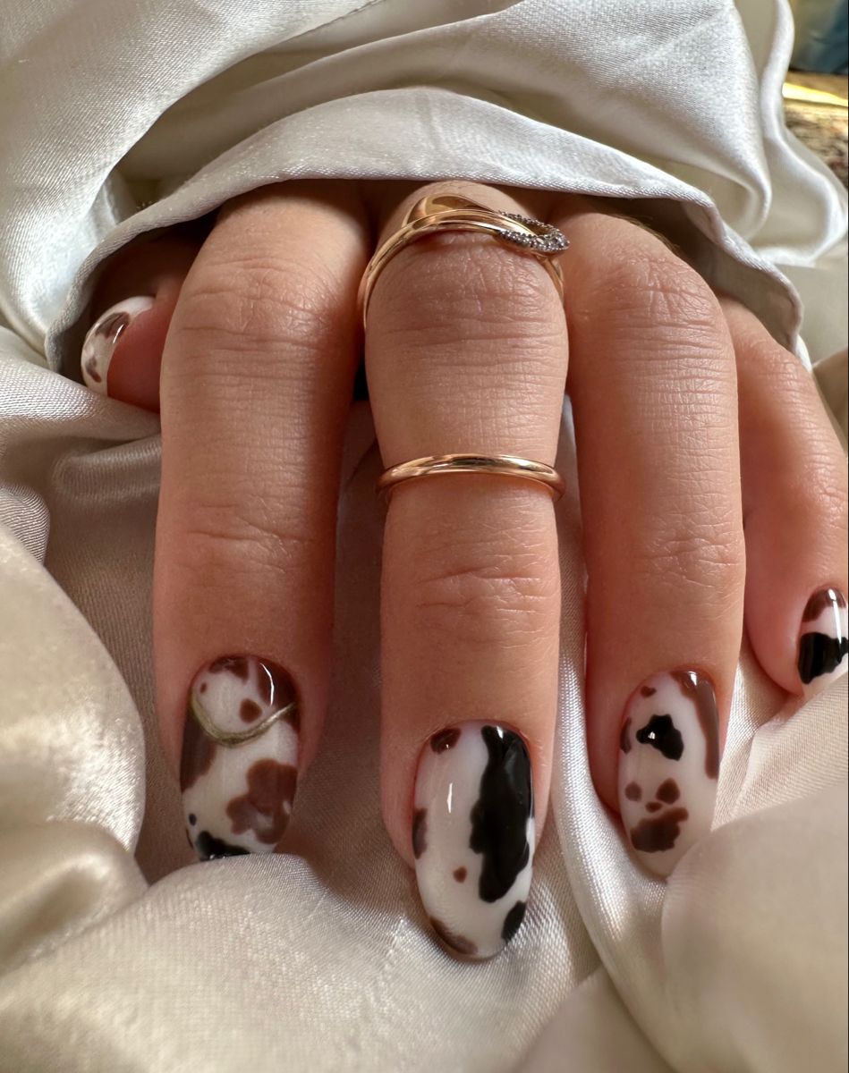 I’d avoid pairing this with heavily patterned clothing—too much print-on-print could overwhelm. Keep outfits neutral so the nails remain the playful statement piece.