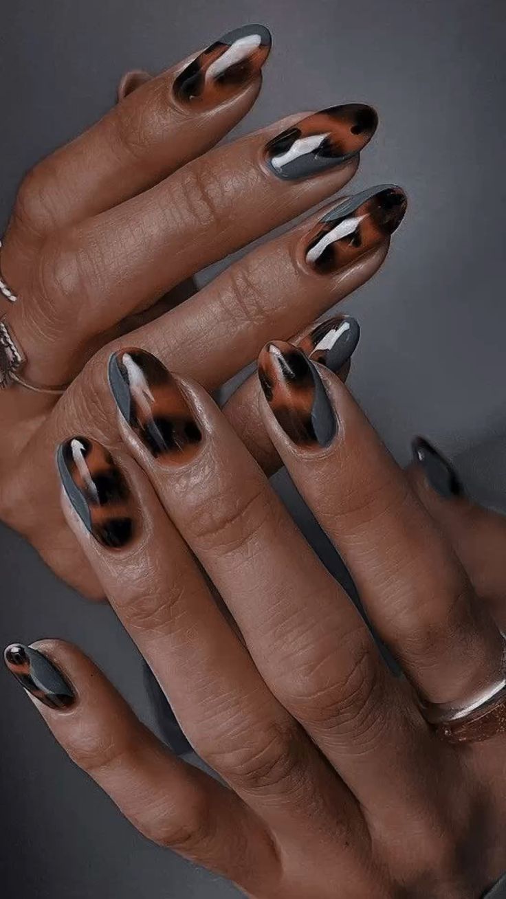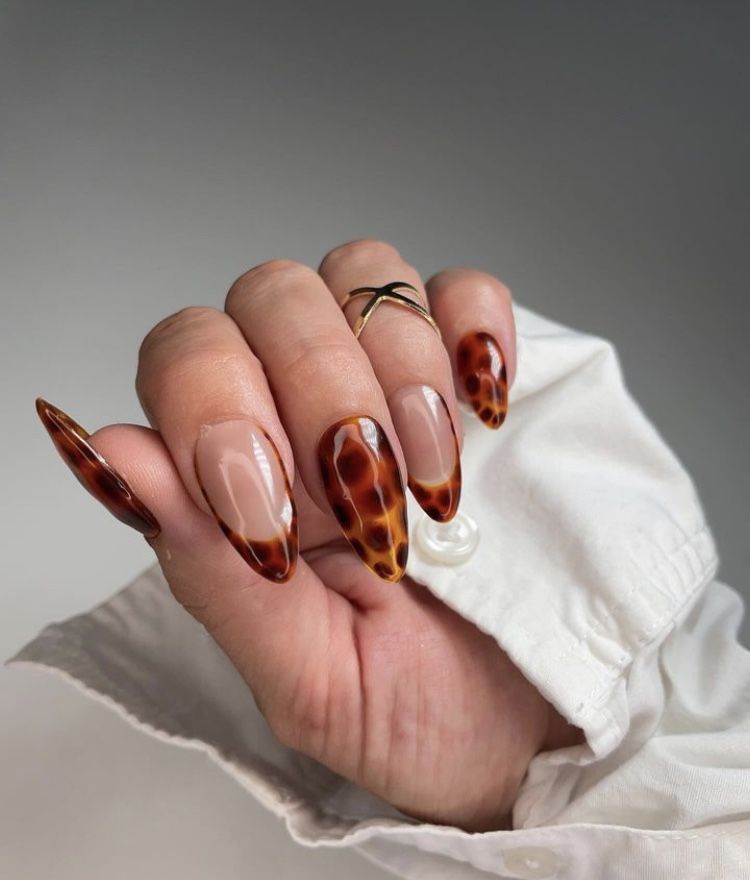 Tortoise French tip: modern, artsy twist on a nail classic.