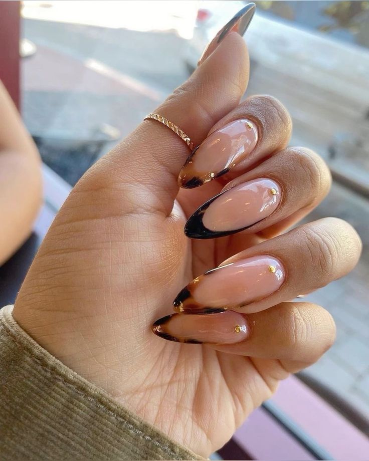 - Black tips: Sleek and modern, they provide a striking contrast to the nude base.
