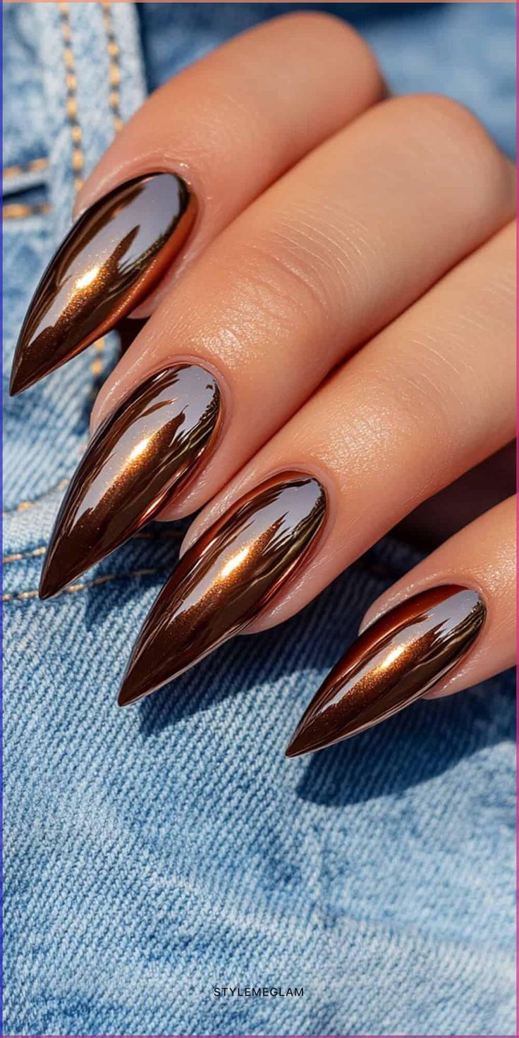 This stunning gradient nail design offers a subtle transition from soft beige to dark, wintry hues. The combination of cream, light brown, and dark chocolate tones creates a sophisticated ombre effect that’s both classy and modern. Perfect for anyone who loves an understated yet eye-catching look, this style is well-suited for both formal occasions and casual outings. The latest gradient nail designs for 2025 are versatile enough to complement winter wardrobes, especially neutral coats and boots.