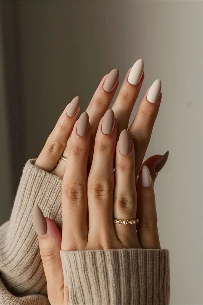 Nude matte base: minimalist backdrop that enhances the taupe tips.