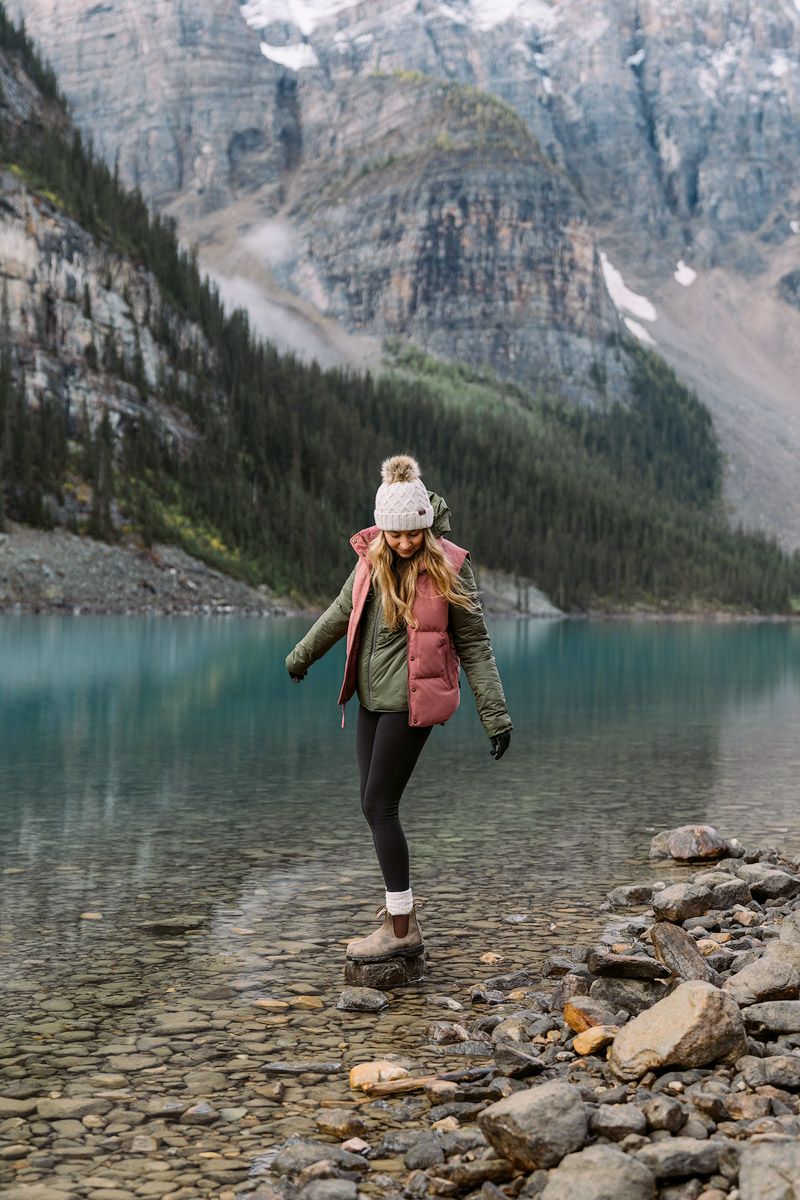 Muted Pink Vest & Layered Greens by the Lake