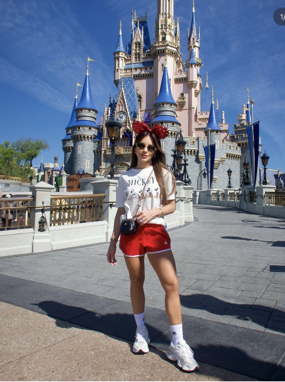 Red Minnie ears: A pop of color that ties everything back to Disney magic.