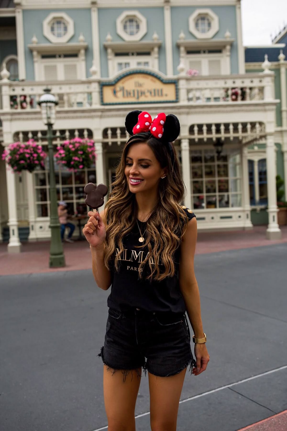Minnie ears: Adds contrast and brings the Disney spirit front and center.
