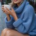 White Turtleneck: Sleek base to balance the volume.